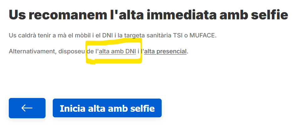 Indicarem al sistema que farem l'alta amb DNI i Targeta sanitària.