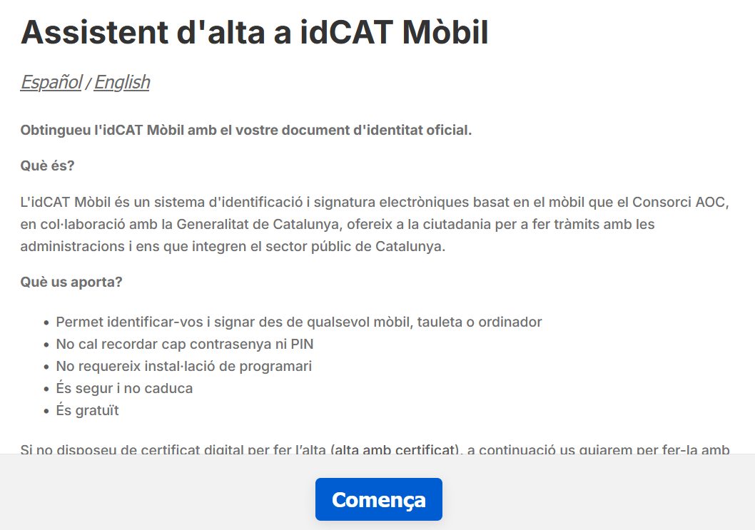 Entra web oficial: Ves a la pàgina de l'idCAT Mòbil: idcatmobil.cat
