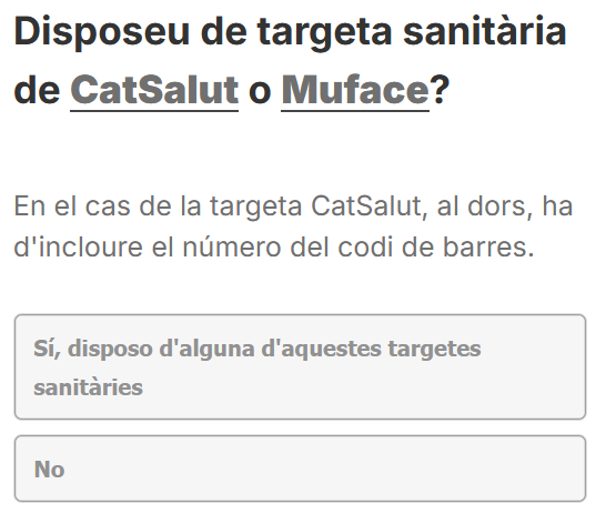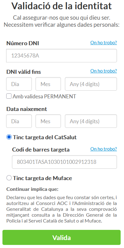 | Targeta Sanitària | Per validar la teva identitat (si ho fas sense certificat). |